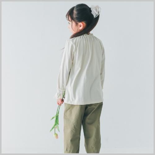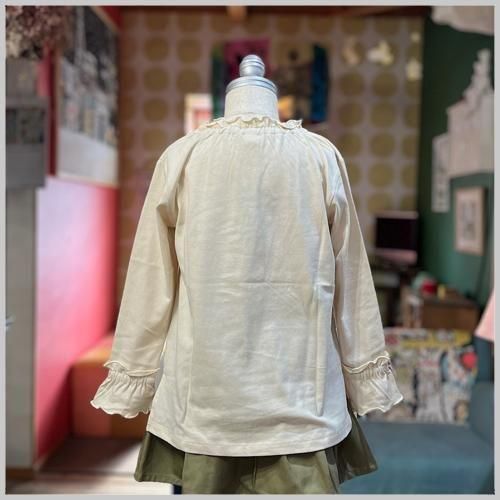 トレーナーなどと重ねて着て衿や袖のフリルを見せたスタイリングも可愛いです。