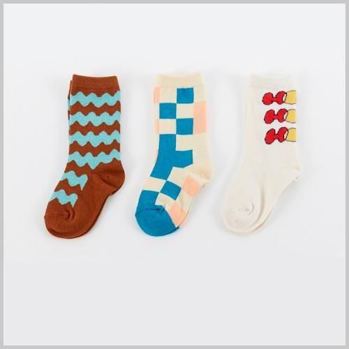 足元のオシャレが楽しいPOPな3デザインのクルーソックスセット。