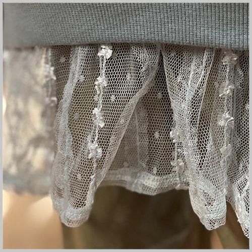 カレッジトレーナーに裾にレースを施してとてもガーリーなデザインに!