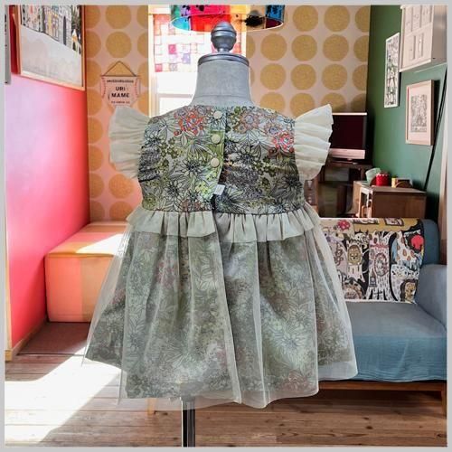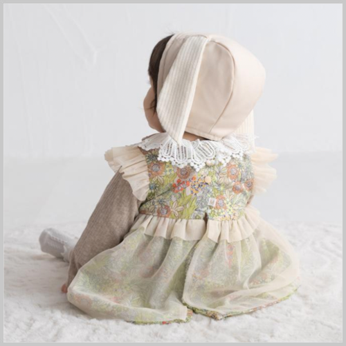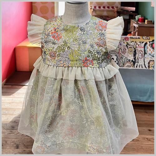 ロンパースなどの上に重ねぎするととても華やかになります。