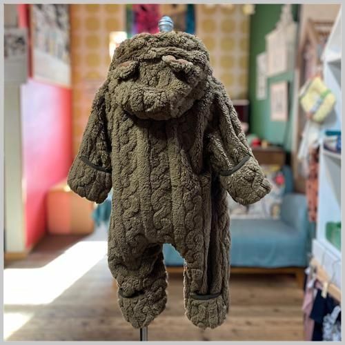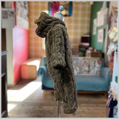 ボア素材のジャンプスーツで、くまちゃんになりきれる、というコンセプト。