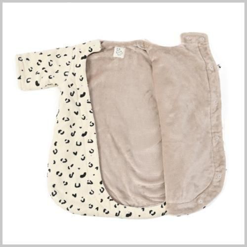 大きく開いて着用させやすく、足先まですっぽり隠れる袋状の形で寝冷え防止におすすめ。