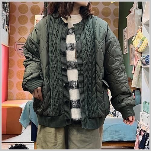 キルティングとケーブル編みニット(コットン100%)のドッキングで仕上げたコートです。