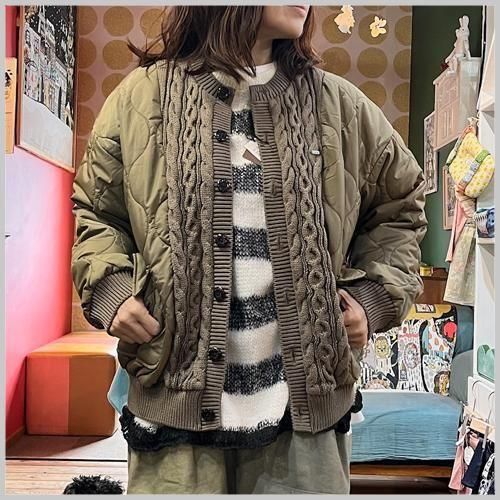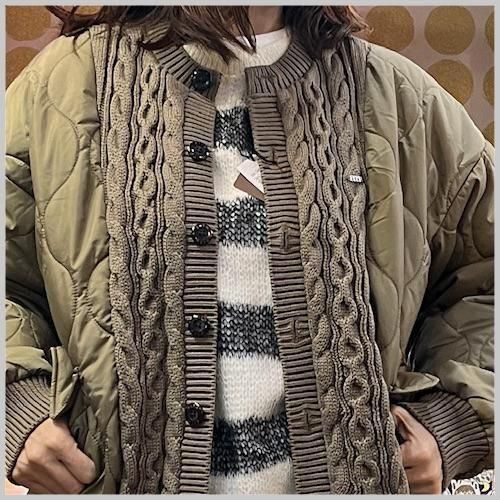 キルティングとケーブル編みニット(コットン100%)のドッキングで仕上げたコートです。