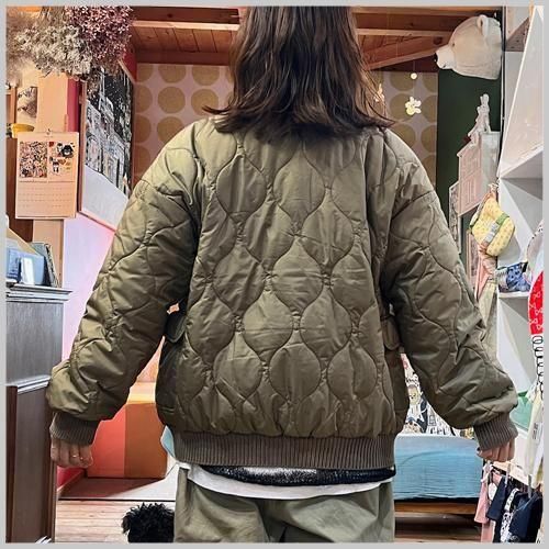 中綿キルトで軽さもあり保温性にも優れた一枚です。