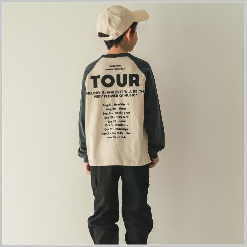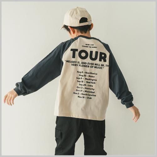 ライブのツアーTシャツ風のグラフィックがカッコいいラグランロングTシャツです。