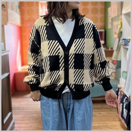 Jr Women ブロックチェック コットンニットカーディガン / maarook マルーク
