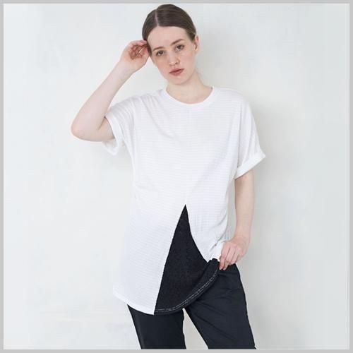 フロントがレイヤーになったデザインのTシャツ。