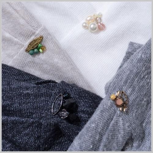 アクセサリーが着いたデザインのTシャツ。