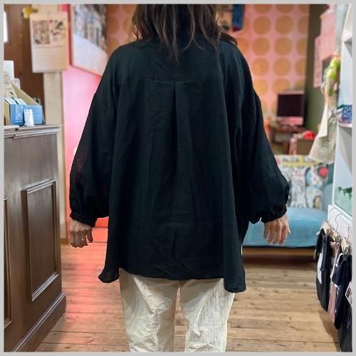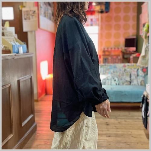 前後差のある着丈とたっぷりとった身幅で中に着込むこともできるので長いシーズン着用頂けるブラウスです。