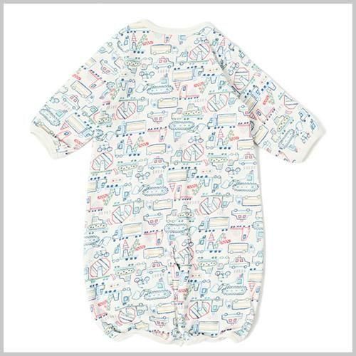 赤ちゃんの成長に合わせてスナップを留めかえると、ドレスとしてもカバーオールとしても使える便利なアイテム。